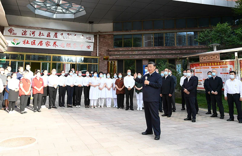 傍晚时分,习近平来到承德市高新区滨河社区居家养老服务中心。近年来,该社区通过政府购买服务、企业运营、社会参与的方式,为社区提供居家养老服务,探索解决老年人健康医疗、生活照料等问题。习近平察看信息化平台、适老化改造等项目,详细询问服务范围、救助方式等事项。习近平指出,满足老年人多方面需求,让老年人能有一个幸福美满的晚年,是各级党委和政府的重要责任。要推动养老事业和养老产业协同发展,发展普惠型养老服务,完善社区居家养老服务网络,构建居家社区机构相协调、医养康养相结合的养老服务体系。要把老有所为同老有所养结合起来,研究完善政策措施,鼓励老年人继续发光发热,充分发挥年纪较轻的老年人作用,推动志愿者在社区治理中有更多作为。要发挥社区作为联防联控、群防群控的第一道防线作用,始终绷紧疫情防控这根弦,全面做好“外防输入、内防反弹”各项工作,坚决克服麻痹思想、厌战情绪、侥幸心理、松懈心态,毫不放松抓好疫情防控。